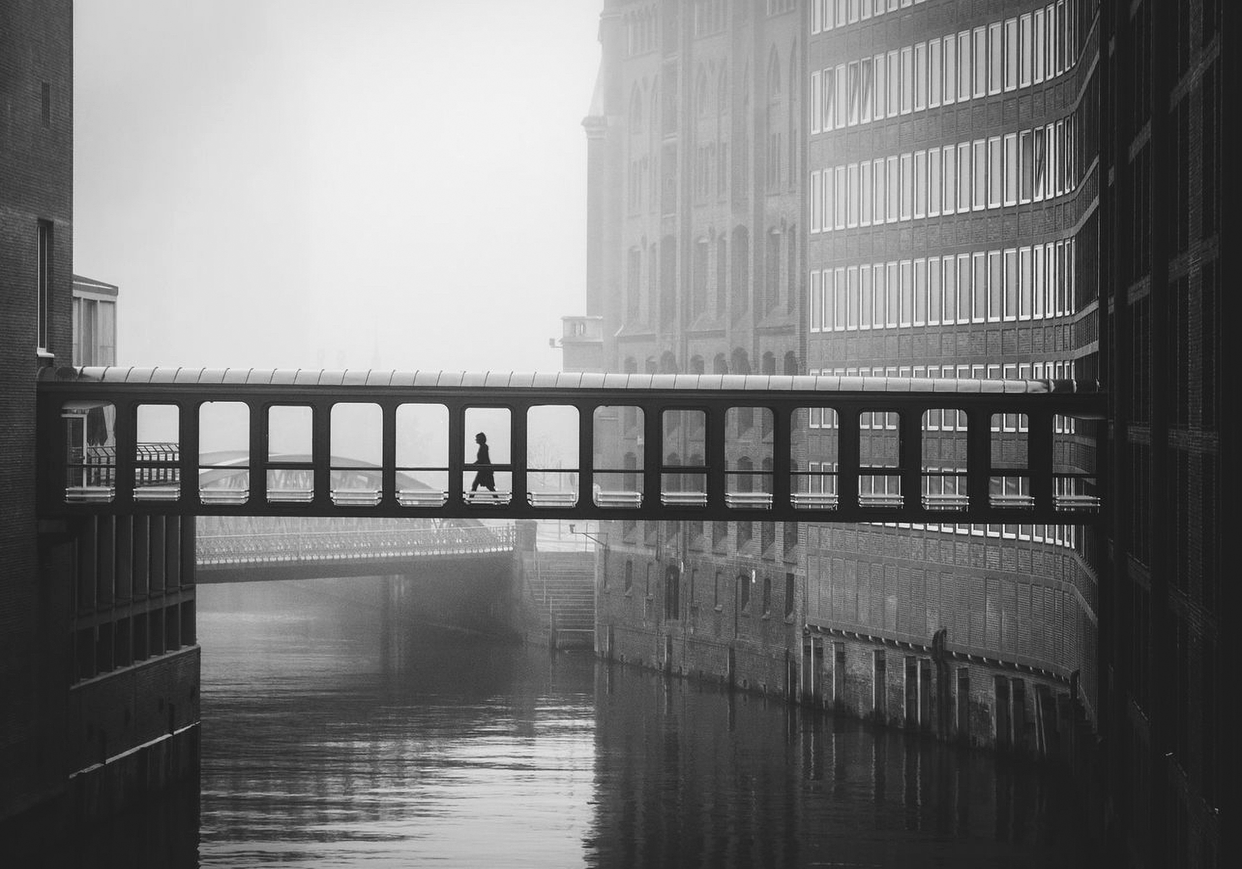 Vive ad Amburgo e attraverso il suo obiettivo trasforma strutture architettoniche in forme geometriche e linee visivamente potenti, spesso catturando un’unica figura silhouette in scenari vasti e solitari.
